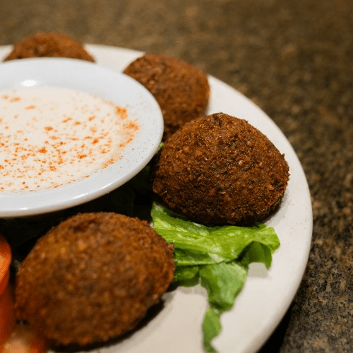 All vegetable patties made of fava beans, chick-peas, onions, parsley, garlic, special spices and cooked in vegetable oil. Served with tahini sauce, tomato and pickles